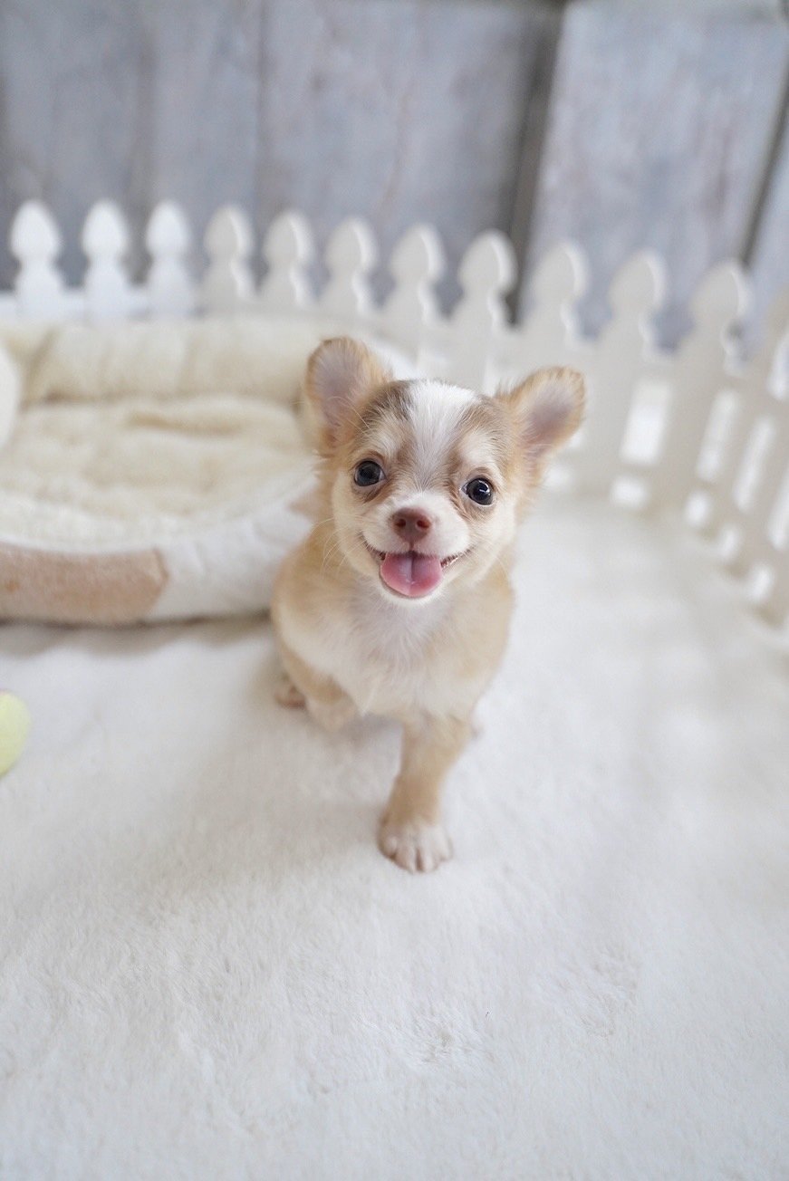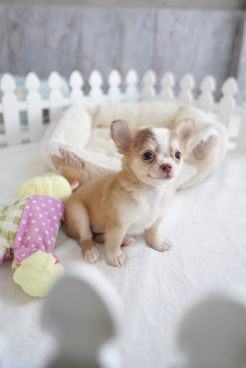 เทนนิสชิวาวา เพศเมียขนยาวสีฟอนครีมมาร์กกิ้ง7,500 wowwchihuahuaเพจ : woww chihuahuaไอจี : wowwchihuahua_happyไอดี ไลน์ : wowwhappy098-8358853